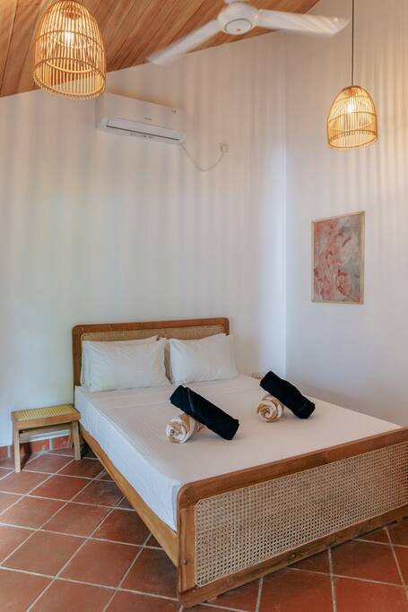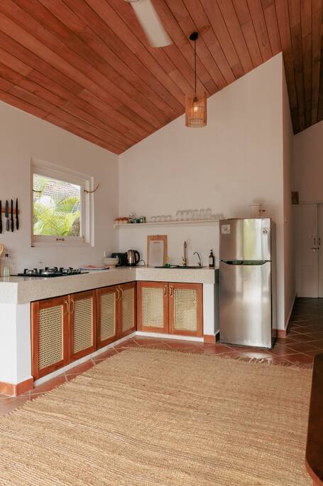 This is a modern, minimalistic villa. All 3 bedrooms have air-conditioning and en-suite bathrooms. There is an artistically curated dining space, fully fitted kitchen and lounge. The kitchen has everything you need: large fridge, freezer, gas stove, kettle and a 7 stage filtered water system ensuring you are drinking great quality water. The villa has a private, Bali style swimming pool, custom designed to be a social space with social seating. The villa is in an amazing location: on a quiet street, right by town: -3 minutes walk to the nearest beach -3 minute walk to one of the best surf breaks in Sri Lanka (Marshmellow) -7 minute walk to the bustling Ahangama town where you will find lots of places to eat and drink, It's also close to many tourist attractions, only -20 minutes to Weligama, -25 minutes to Unawatuna Beach and -40 minutes to Galle Fort.